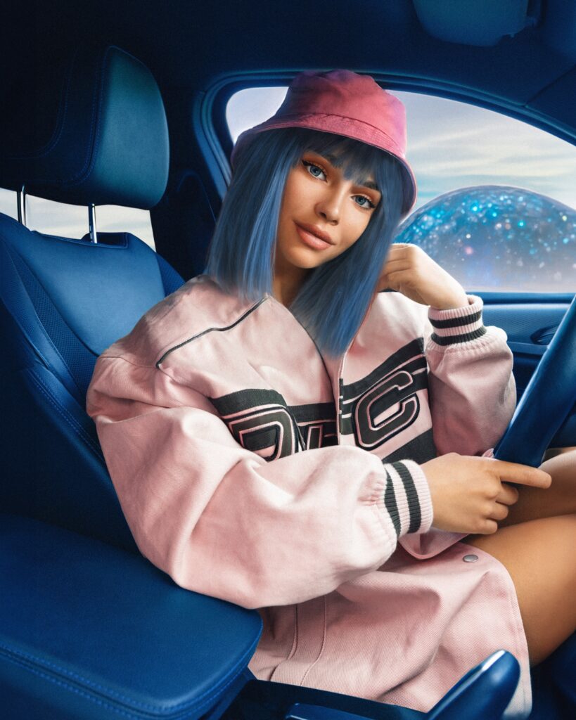 The Influence. Bejby Blue didn't just read ads. She lived. She became a Gen Z icon with over 20k followers, bridging trends and addressing issues young people actually care about—like climate change, mental health, and financial stability. She releases chart-topping music (1M+ organic views), argues with followers, and exists as a living entity. She represents a shift from renting influence to owning IP—a spokesperson with zero scandal risk who never ages.