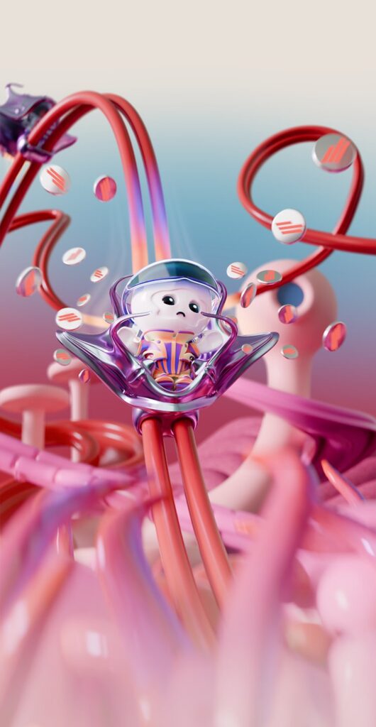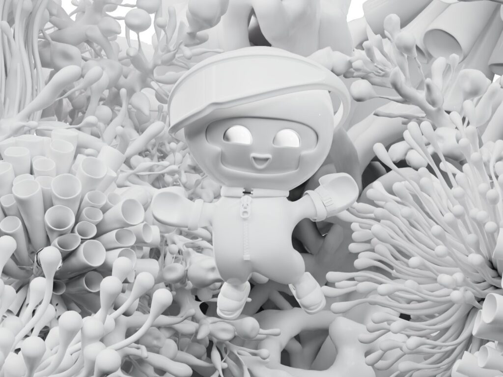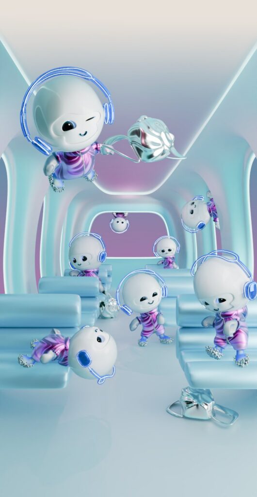 Every asset found in the campaign was designed, and produced from scratch by our CGI team. TABI is wholly animated by hand by one animator in our team, while the reference for the way TABI moves was filmed with a dancer, who was performing on trampolines to capture the fluidity representative of TABI's soft and plushy world. The postproduction is what took the campaign to the next level.